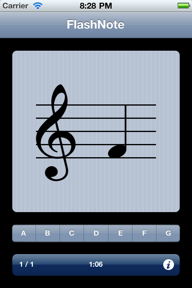 FlashNote is a simple app designed to help you (or your students) develop note-naming skills for reading music. Instant feedback will help you quickly develop proficiency at naming notes, while the statistics will allow you to track your music-reading fluency.