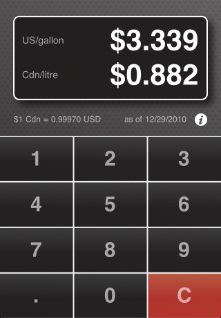 Gas Exchange solves a common problem for Canadian or American cross-border shoppers — how do you tell how much that gas actually costs? US gas is sold in US dollars per gallon, while Canadian gas is sold in Canadian dollars per litre. Gas Exchange automates the conversion, using up-to-date exchange rates, so that you can see gas prices in terms you're used to, making comparison much easier.