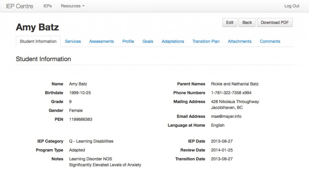 IEP Centre is a custom-designed web app for schools or school districts needing to manage Individualized Education Plans. It features a simple user interface and workflow, designed in close consultation with learning support teachers in British Columbia. IEP Centre allows learning support teachers to create and edit IEPs, and to provide read-only access to individual IEPs to specific classroom teachers.