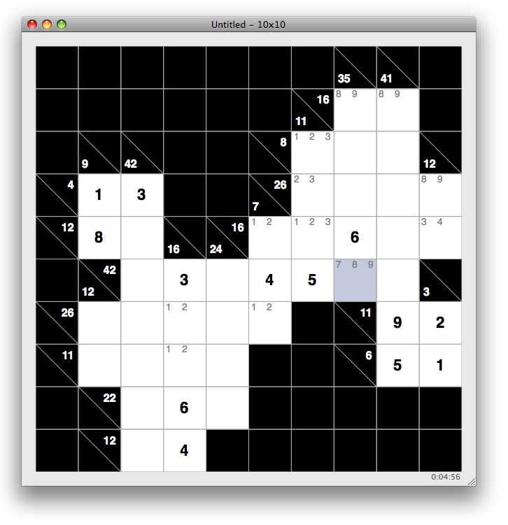 • McKakuro - Following in the footsteps of the wildly popular Sudoku puzzles, Kakuro (or Cross Sums) puzzles are deceptively simple logical puzzles. McKakuro generates and allows you to solve Kakuro puzzles of different sizes. Download Now (1.5 MB)